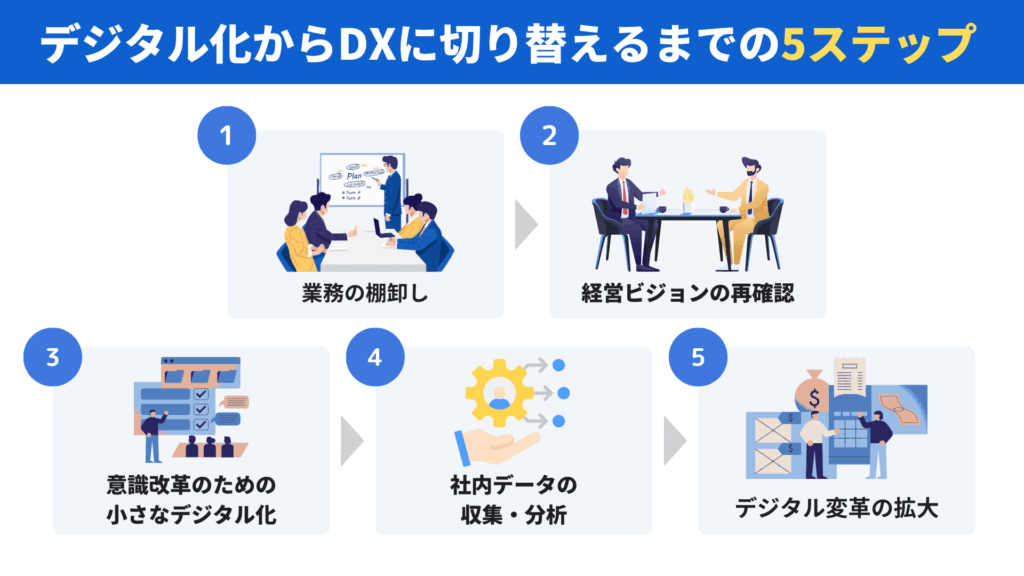 デジタル化からDXに切り替えるまでの5ステップ
