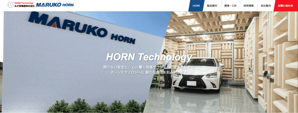 自動車用ホーンの専門メーカーである丸子警報器株式会社は、国内外の自動車メーカーに製品を供給しており、高機能・高品質・低コストの実現に向けた体制を確立しています。