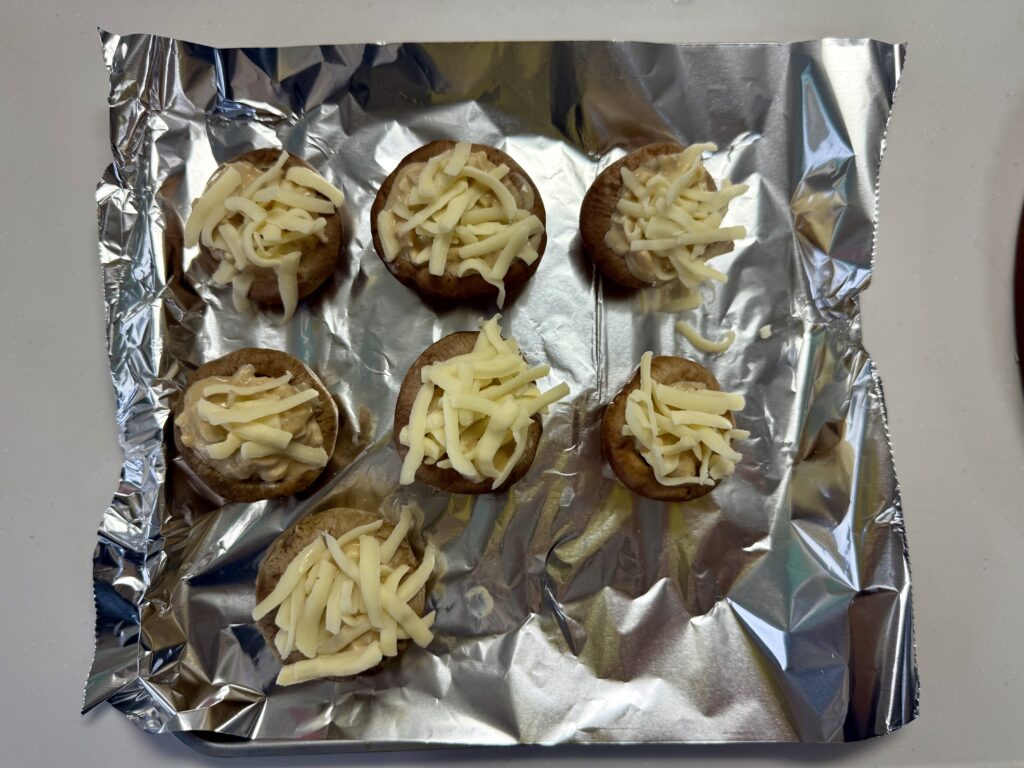 Aの分量は、レシピ通りで作ってみましたが、このしいたけの分量でぴったりおさまったので、問題なさそうですね。チーズは大好きなので、たっぷりかけてみました!