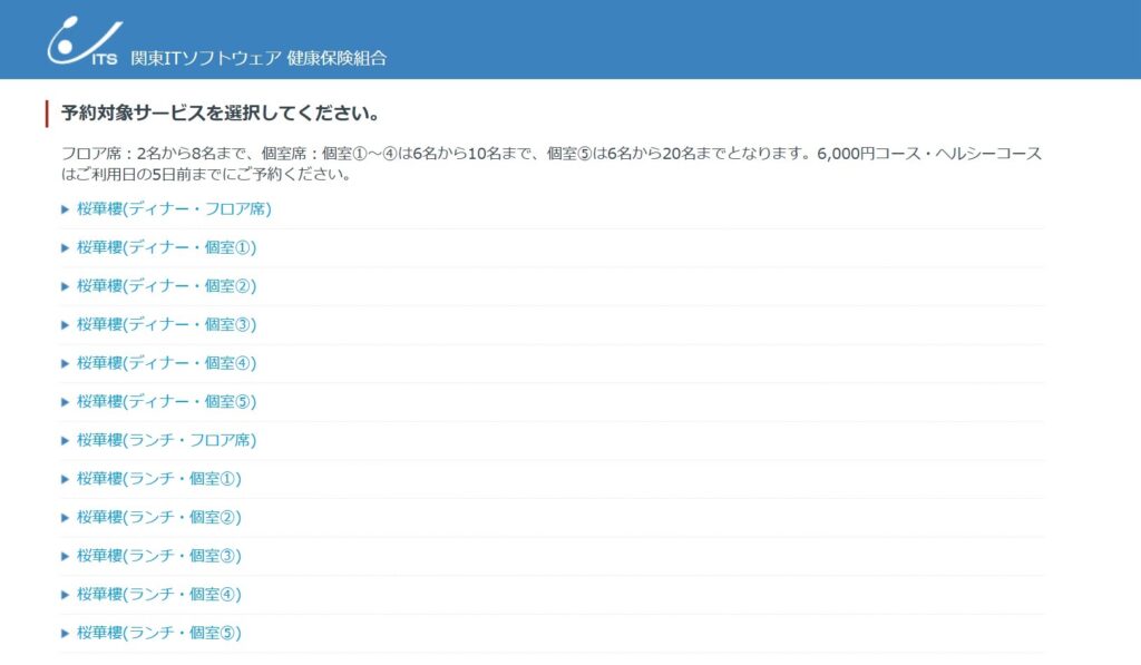 完全予約制なので、まずはIT健保のHPにある「桜華樓」のページから、予約を行うシステムです。空き状況確認を見て、先々の空いている日程と時間を選択します。実際に見てみるとわかりますが、桜華樓はかなりの人気店なので、意外と先々まで空きがなかったりするのです。