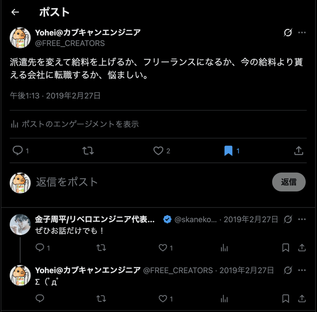 坂田:実は、2019年頃、Twitter(現X)で「転職するか、悩ましい」といった投稿をしたところ、それを見た金子さんが直接コメントをくれたんです(笑)。