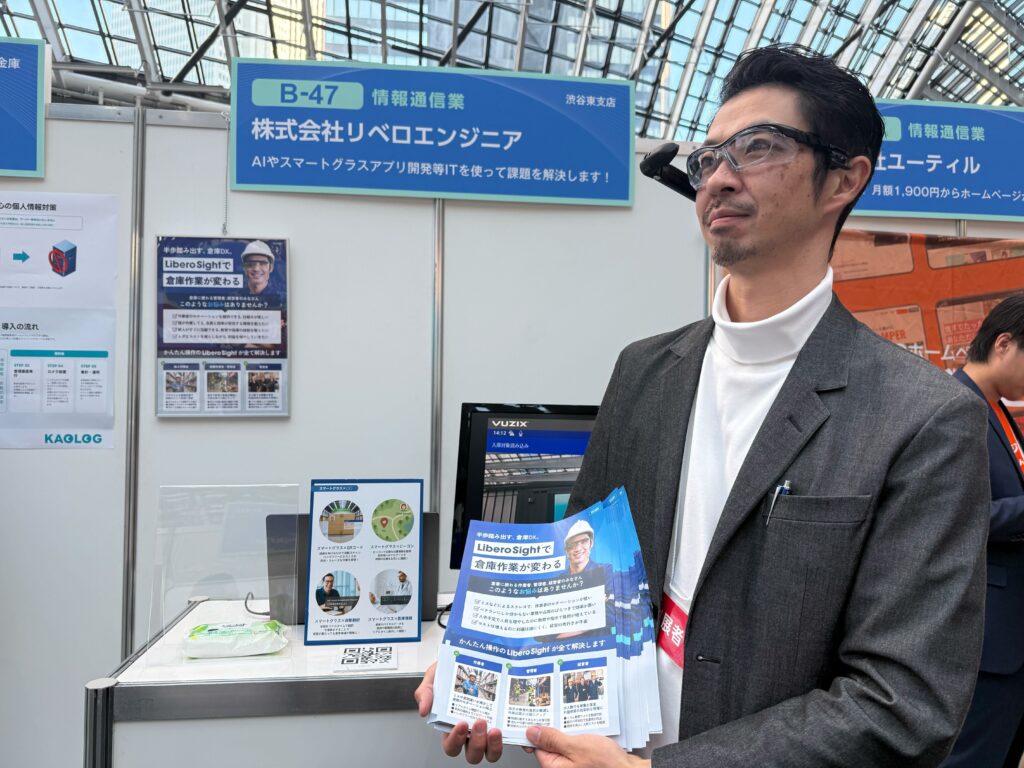 先月に行われた「第5回[名古屋]スマート物流EXPO」に引き続き、リベロエンジニアが展示した「Libero Sight™(以下、リベロサイト)」は、深刻な人手不足や教育コストの増加といった物流業界の課題に対応するため、現場の声をもとに開発されたスマートグラスソリューションです。