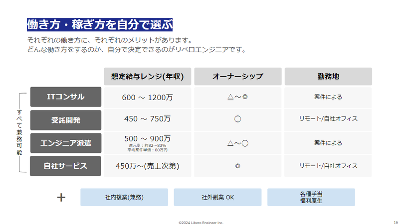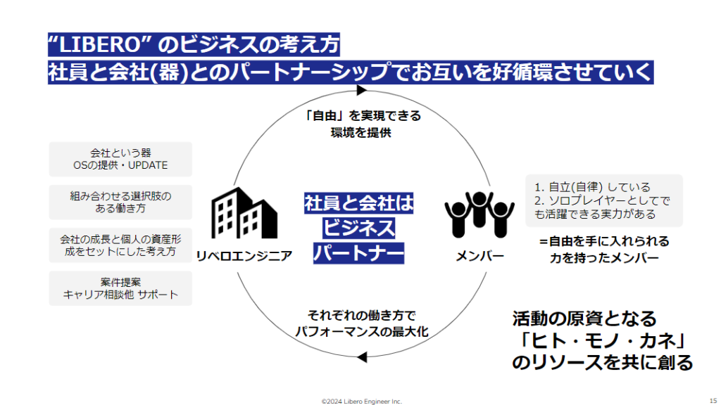 競争の激化や物価高による収入不安から安定を求める人が増える一方で、「一度手にした自由な働き方は手放したくない」という葛藤も多いはずです。リベロエンジニアは、創業時からこの課題に対する答えとして、正社員の「安定」とフリーランスの「自由」を両立させる「第3の働き方」を提唱しています。