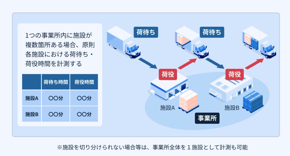 原則として、荷待ち時間と荷役等時間を分けてそれぞれ計測。「物流効率化」理解促進ポータルサイトより引用